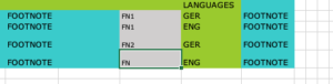 Die erste Fußnote muß FN1 und die zweite FN2, usw. heißen. Die engl. genauso.